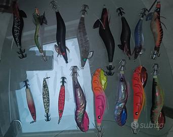 vendo in blocco esche totanare x calamari e seppi tutte nuove e qualcuno usato buone .Marca: Jatsuic, Rapala, Yamashita,Yo-Zuri,Duel, ecc. ecc. vendo separamente tre richiami 100 euro