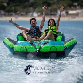 Costruito in PVC ad alta resistenza con copertura totale in Nylon con protezioni in morbido neoprene, dotato di maniglie in nylon con protezione interna in eva soft-grip e protezione inferiore in neoprene, 4 camere d'aria, nr. 2 attacchi rinforzati con fettuccia di nylon che danno la possibilità di poterlo trainare da entrambi i lati. Non adatto ad uso professionale. NR. PERONE: 2 NR. MANIGLIE: 7 DIMENSIONI: GONFIO 247X183X70 CM
