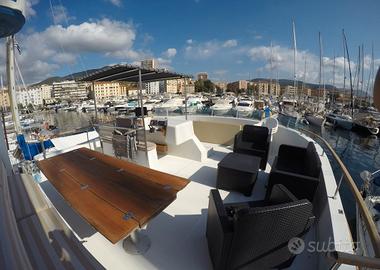 Trawler Transcat 48 Catamarano del 2000 Motori: 2 Yanmar 315 cv 6LP STE da 1850 ore Linea d'asse Lunghezza: 14,50 m - Larghezza: 6,58 m Serbatoi carburante: 2×1500 L Serbatoi acqua: 2×250 L Revisione straordinaria effettuata nel 2020: Smontaggio motori Sostituzione dei due carter olio Revisione iniettori, gomiti di scarico, scambiatori di calore. 2 invertitori ZF HURTH Marine revisionati Revisione completa della tenuta meccanica con kit PSS Alternatore lato dritta sostituito nel 2021 A seguito di un'avaria nel 2023: Smontaggio del motore di sinistra Motore revisionato a nuovo: alternatore, motorino d'avviamento, turbocompressore. Gruppo elettrogeno MASE 8K, 1600 giri/min, anno 2023 (106 ore) Caricabatterie VICTRON 12V 100A e 50A (2019), installato 2023 Caricabatterie DC-DC (batterie motore e gruppo tramite pannelli solari) Orion Tr Smart 12/12 18A (2024) Global Link 2024 2 ripartitori di carica motore (2024) Inverter 12V/220V 1600W VICTRON Regolatore solare MPPT VICTRON 150/100 (2020) 1 ripartitore di carica solare (2020) 4 pannelli solari da 320W (2020) Piano cottura Forno multifunzione 220V con microonde Frigorifero americano Dinette 20 m² Cuscineria nuova 4 cabine doppie con 4 bagni + 3 WC elettrici e 1 manuale) Lavatrice Asciugatrice Televisore Boiler da 60 L (220V 1200W e alimentazione da circuito motore) - 2023 Dissalatore DESSALATOR 100 l/h (tubo filtro e membrane nuove, 10 ore di utilizzo) Fly 21 m² Bimini Sottopavimento in teak rifatto nel 2024 Verricello LEWMAR (2000W) Gommone 3D TENDER 300 del 2021 (30 ore) Motore HONDA 15 CV (avviamento elettrico e manuale) Serbatoio: 20 L Tendalino chiusura camper posteriore Visibile ad Ajaccio CHIAMARE Roberto Bonora al n. Offriamo servizi completi: trasporti marittimi, assicurazioni, perizie, finanziamenti e molto altro. Hai trovato all'estero una barca di tuo interesse? Affidati a noi per un acquisto senza rischi.