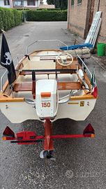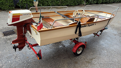 Barca tenuta molto bene venduta con carrello con freni e libretto, motore ducati 15 hp e motore Ducati cucciolo 5hp. Tendalino e dotazione originale ok. Timoneria perfetta. Mai urti. No crepe o danni.