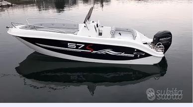 Caratteristiche Generali: Cantiere e modello: Trimarchi 57 S DAY Lunghezza f.t.: 5,70 mt Larghezza: 2,10 mt Portata persone: 7 Peso (senza motore): 600 kg Potenza max: 115 CV Dotazioni di serie: Luci di Via, Luci 360°,Tromba, Pompa di sentina,Pannello interruttori con portafusibili, Bussola, Pulpito in acciaio,Scaletta di risalita, Bitte, Timoneria, Parabrezza, Tappezzeria completa ,Musone, Corrimano parabrezza DOTAZIONI EXTRA: -Base tavolo -Bussola -Commut. per 2 batt. -Doccia rigida -Frontalino + Casse -Imbarco esterno -Indicatore carburante -Serbatoio -Stacca batteria -Tendalino Barracuda Marine Via Nazionale 451 Torre del Greco