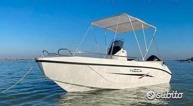 Passion Marine Official Dealer in CAMPANIA del noto marchio di barche TRIMARCHI , oggi propone la piccola di casa dei cantieri TRIMARCHI per chi e' alle prime esperienze o per chi non pretende tanto nelle giuste dimensioni, ma vuole comunque muoversi con comodita' con una barca di stile e qualita' totalmente MADE IN ITALY . NICA 5.30 NEW del Cantiere e' dotata di un ottima carena con un design rinnovato,barca totalmente autosvuotante , ottima per la pesca amatoriale o semplicemente per il relax in famiglia ed amici. Le sponde molto alte e gli ampi passaggi laterali fanno di Nica 530 uno scafo molto sicuro e comodo. La particolarità di questa barca è il doppio prendisole (uno a prua e uno a poppa) che consente di prendere comodamente il sole fino a 5 persone in 2 ambienti separati. A prua abbiamo a disposizione un prendisole molto ampio, con la possibilità di trasformarne una parte in comodo tavolo pranzo aggiungendo l'asta di supporto. SPECIFICHE TECNICHE: Lunghezza M 5,30 fuoritutto 5.5 Larghezza M 1,90 Peso (senza Motore) Kg. 530 Portata persone N. 6 Potenza Min/Max 40/75 hp Motorizzazione F.B Omologazione CE Categoria Navigazione C Barca Standard : -N°4 BITTE ACCIAIO A PRUA E POPPA,MUSETTO A PRUA PER ANCORA MANUALE, BATTAGLIOLA IN ACCIAO, PARABREZZA IN PLEXYGLASS FUME',TASCE LATERALI PORTA OGGETTI,STERZO, SCARICHI A MARE IN PVC, SCALETTA DI RISALITA ACCIAO E LEGNO,LUCI DI VIA A LED,LUCE 360 A POPPA TROMBA,IMPIANTO ELETTRICO STANDARD. OPTIONAL DA POTER AGGIUNGERE: Base tavolo Bussola STACCABATTERIA IMP.Doccia CON AUTOCLAVE E SERBATOIO DA 60LT STEREO+ Casse LUCI DI CORTESIA LUCI SUB Imbarco CARBURANTE IMBARCO ACQUA Indicatore carburante con gallegiante elettronico Serbatoio plast.acqua Lt. 60 Serbatoio plast. carburante Lt. 70 Tendalino 3 archi POSSIBILITA' DI MOTORIZZAZIONE DA 40CV A MAX 70CV POSS.FINANZIAMENTO IN SEDE SOLO A REFERENZIATI CON DOCUMENTI REDDITUALI Per informazioni si gradiscono cont