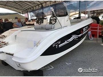 PASSION MARINE Official Dealer in campania del marchio TRIMARCHI ,proponiamo un modello di barca molto venduta ,comoda ma' nello stesso tempo molto pratica e di gestione semplice, la versione S 570 Day si differenzia per avere un ampio prendisole comodo di poppa ed anche di prua ,ma' non ha la seduta di guida centrale come il modello S 570 Pro, barca totalmente autosvuotante ,murate alte, una bellissima open dal design innovativo, pratico e funzionale,molto comoda la versione S 570 DAY vanta di un ampio e comodo prendisole di poppa con poggiaschiena estraibile molto comodo per chi sta dietro durante la navigazione, il passaggio laterale con cuscino amovibile a poppa lato sinistro e' molto comodo per la risalita da mare e fa si' di non dover passare sulla cuscineria . IL Prezzo e' riferito alla barca senza motore e con Dotazioni standard di serie: Barca Standard : -N°4 BITTE ACCIAIO A PRUA E POPPA,MUSETTO A PRUA PER ANCORA MANUALE, BATTAGLIOLA IN ACCIAO, PARABREZZA IN PLEXYGLASS FUME',TASCHE LATERALI PORTA OGGETTI,STERZO, SCARICHI A MARE IN PVC, SCALETTA DI RISALITA ACCIAO E LEGNO,LUCI DI VIA A LED,LUCE 360 A POPPA TROMBA,IMPIANTO ELETTRICO STANDARD OPTIONAL DA POTER AGGIUNGERE: Base tavolo Bussola STACCABATTERIA IMP.Doccia CON AUTOCLAVE E SERBATOIO DA 60LT STEREO+ Casse LUCI DI CORTESIA LUCI SUB Imbarco CARBURANTE IMBARCO ACQUA Indicatore carburante con gallegiante elettronico Serbatoio plast.acqua Lt. 60 Serbatoio plast. carburante Lt. 70 Tendalino 3 archi Inoltre diamo la possibilita' ai nostri di finanziare l'intero importo della barca e motore . Lunghezza f.t.: 5,70 mt Larghezza: 2,10 mt Portata persone: omologata per 7 persone Peso (senza motore): 600 kg Potenza min: 40cv Potenza max istallabile: 115 CV X INFO GRAZIE