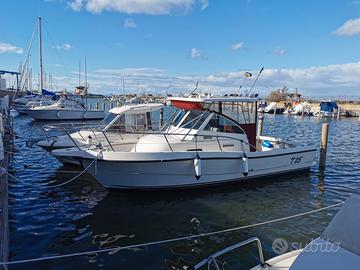 Tuccoli T25 anno 1998 motorizzato con due Yanmar da 125 cavalli con 900 ore di moto. Velocità max 26 nodi. Motore elettrico a prua Garmin motor Force anno 2023 con batteria litio 100 AH / 36 Volt. Trolling Valve su entrambi i motori. Manette controllo invertitore e Gas doppie ( sulla consolle ed a poppa ). GPS ECO Lowrance HD12 pollici. Verricello elettrico, VHF, Stereo, Autoclave, Pompa lavaggio pozzetto alta pressione con pescaggio acqua di mare, Tendalini completi chiusura pozzetto, Wc elettrico.