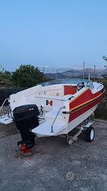 vendo barca 6 metri fuori tutta compreso plancette di poppa completa di motore in ottime condizioni Evinrude 737 40 CV compreso carrello ellebi basculante ma senza targa con ruotino anteriore nuovo la barca due anni fa è stata tutta refittata e verniciata ingrassaggio leveraggio comandi pavimentazione rifatta con resina compreso vagone di poppa con serbatoio ausiliario doccetta cabina la barca è pronta per il mare in dotazione do kit di antivegetativo da passare per qualsiasi info chiamare al 3287238774 prezzo trattabile la barca si trova a Lascari provincia Palermo