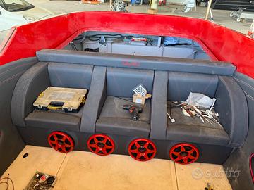 Reffitting totale 2025 tappezzeria nuove personalizzata con loghi e cuciture 2025 sedili anteriori anatomici ammortizzati prendisole mai montato, serbatoio nuovo impianto elettrico con tutti gli accessori nuovi impianto stereo 9000 watt con 4 amplificatori 2 sub e 10 casse più Twiter doppie batterie nuove monoleva ad incasso quadro strumenti nuovo gps e tutti gli accessori nuovi , idroguida cavo e scatola e volante nuovo praticamente è tutta nuova completa di piede bravo one e campana tutto revisionato2025 in centro mercury Nota: L imbarcazione viene venduta senza motore ma completa di tutto cavi telecomandi treccia mercruiser pompa trim ecc il prezzo richiesto e metà del denaro speso nel 2025