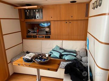 Impianti meccanici. Estintore automatico. Impianto carburante con filtri Racor. Impianto collegamento a massa di motori, invertitori, serbatoi, eliche, timoni e prese a mare. Serbatoi gasolio inox (nr. 04) con livello carburante visivo. Allarme acustico per acqua in sala macchine. Impianto idrico Autoclave con serbatoio in pressione. Boiler 220V da 40 litri. Elettropompa acqua di mare con uscita in pozzetto e a prua per lavaggio catena. Impianto per smaltimento acque nere con cassa di raccolta e pompa elettrica a comando manuale. Impianto per smaltimento acque grigie. Presa acqua diretta in banchina. Impianto elettrico Batteria per generatore Batterie per avviamento motori Batterie per servizi. Punti luce in tutti gli ambienti Cavo 220V con presa in pozzetto per alimentazione da banchina 3 poli 50A. Prese 24/220V in tutti gli ambienti.