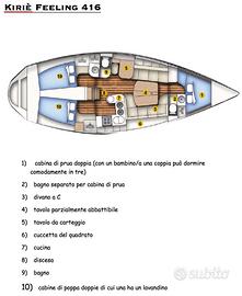 Armatore privato, amante della vita di rada, mette a disposizione la propria imbarcazione e la propria esperienza per vacanze settimanali o per fine settimana nell'Arcipelago toscano, in Corsica o in Sardegna con la formula del noleggio occasionale. La barca è un Kiriè Feeling 416, 12,60 m, tre cabine, due bagni, ampia dinette, tender 3 m e motore fuori bordo. Imbarco a Piombino, prezzi modici da definirsi in base al numero di persone, durata del viaggio, tipo di navigazione, periodo. Se interessati chiamare il 3475971063 anche whats app.