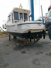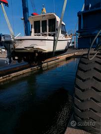 Lunghezza f.t. Mt 8,70 larghezza mt 2,70 dislocamento kg 3000 portata 8 persone. Ultimi lavori sui motori e carenaggio eseguiti ai primi di giugno 2025: Sostituzione turbina e riser motore dx con ricambi NUOVI (non revisionati). Tagliandi completi motori e sostituzione di TUTTE le prese a mare. Velocità di punta 28 nodi. PRONTA ALLA BOA. Vendesi con ausiliario yamaha 9.9 da lavoro, strumentazione Lowrance Elite e sonda tm150, faro di prua orientabile da cabina, dotazioni di bordo ecc.ecc.