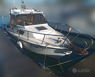 Marca Intermare Motore V.M. Anno motore 1998 Anno scafo 1988 Descrizione Vegliatura 700, Cantiere Intermare, Anno 1988, Lunghezza f.t. 7,13 m, Lunghezza 6,22 m, Larghezza 2,62 m, Altezza di costruzione 1,10 m, Pescaggio 0,38 m, Dislocamento 2,97 T, Peso scafo senza motore 1075 kg, Portata passeggeri 8. Disposizione interni: Cucina con lavello, fornello e frigo, Cuccetta per 2 persone, Wc marino in locale separato. Pilotina con allestimento Fisherman. Descrizione motore VM 170 hp, Anno 1998, Installato a giugno 2022, Poche ore di moto. Motore ausiliario 25hp Posizione Motore EntroBordo Alimentazione Motore Diesel Misure Lunghezza Mt 6,22 Larghezza Mt 2,62 Accessori Gps Eagle, Eco Koden, Eco Lowrance X71, Vhf Shark, Bussola, Verricello elettrico con ancora, Faro di profondità, Tergicristallo, Chiusura invernale, Tendalino parasole, Doccetta nel pozzetto, Plancetta con scaletta da bagno, Porta motore ausiliario da traina, 3 porta canne fissi, 2 porta canne mobili, 2 panche abbattibili, Pompa di sentina, Cuscineria interna completa, Cuscineria esterna di poppa. BUONE CONDIZIONI GENERALI Tutti i contenuti (caratteristiche, metrature, accessori, ecc. ) degli annunci sono puramente indicativi, potrebbero contenere imprecisioni o errori, pertanto non comportano nessun vincolo contrattuale. Il prezzo è soggetto a mediazione agenzia. Gli acquirenti hanno diritto di ispezionare personalmente l'oggetto e/o di sottoporre il natante a perizie a loro spese, il mediatore non può essere considerato responsabile delle probabili inesattezze qui riferite. Consigliamo di visionare sempre l'oggetto prima dell'acquisto.