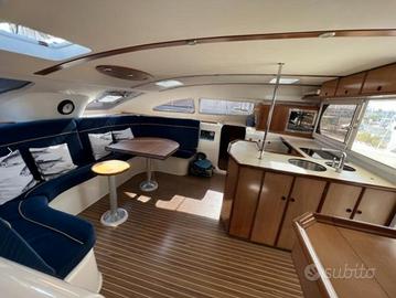 VELA Catamarano Nautitech 47 del 2004 Motori: 2x75CV (2021) Volvo D2 75 con 80 ore Dimensioni: 14,50m x 7,60m 4 cabine doppie + 1 skipper 4 bagni 2 WC (2022) Jabsco + 1 WC elettrico Jabsco + 1 con serbatoio acque nere 2 lavelli 2 docce esterne (1 acqua calda) 3 serbatoi acqua 960L 2 serbatoi gasolio (2x220L) 2022 Boiler 44L 10 Passacavi 2022 Finestre PMMA 2022 Vela solent Elvstrom Hydranet autovireur (35 m²) su avvolgitore FACNOR 2010 Randa a stecche full batten (83 m²) Elvstrom Hydranet 2010 Spinnaker asimmetrico con sacca 100 m² 2021 Lazy bag Incidence + Lazy jack 2016 Pulegge Harken 2021 5 winch Lewmar + 1 elettr. 2017 Rigging statico 2016 Tirante cavi 2021 Verricello elettr. Lofran Tigers 1200 W + telecomando Catena 75m + ancora Spade 2021 Frigoboat inox 80L Frigorifero 80L suppl. 220 V Congelatore 50L 220 V Tendalino Batyline Tendalino di protezione barre (nuovo 2022) Scaletta da bagno Ruota timone (2018) Dinette Cuscineria Forno e Cucina Smev a gas (3 fuochi) Passerella pieghevole Caricabatterie Dolphin 40Ah Pannello elettr. Scheiber Inverter 220V 3 KW 2022 Generatore Onan 4 KVA Batterie di servizio 5x225 Ah AGM 2021 Batterie motore 2x95 Ah AGM 2022 Batteria generatore 1x95 Ah 2022 Pannelli solari 3x150 W Pannello avvio remoto (generatore) Eolico Silentwind 400 con regolatore di carica Dissalatore bi-tensione DUO D60 220V/12V con pannello remoto 900 ore Anemometro Raymarine ST60 GPS RN 300 Raymarine Radar Quantum con AIS nuovo 2022 Tablet Sail Proof nuovo 2022 + 2 supporti timone Pilota automatico Tender Caribe 3,20m Serbatoio 20L Motore Honda 20 cv 4T Visibile a Montpellier CHIAMARE Roberto Bonora al n. Mostra numero Offriamo servizi completi: trasporti marittimi, assicurazioni, perizie, finanziamenti e molto altro. Hai trovato all'estero una barca di tuo interesse? Affidati a noi per un acquisto senza rischi. Se sei un giovane broker certificato e vuoi collaborare con una realtà seria e consolidata chiamaci! Ti stiamo cercando.