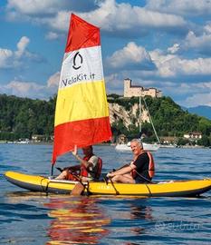 VelaKit Raffica, vendo kit vela per canoa kayak Gumotex Decathlon Itiwit Tribord e altre, molto compatto da smontato (70cm 5kg) si ripone nel gavone della barca o del camper e si monta facilmente in 2 minuti, canoa non inclusa. Ha due derive per navigare controvento di bolina. Barca a vela senza costi di rimessaggio. Chiamatemi per altre informazioni