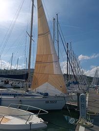 vendesi set di vele da regata, 4 fiocchi in mailar- kevlar come nuovi, zero ore di sole, sempre ben tenute in magazzino, disegnate per comet 333. Anche singolarmente: 1)Genoa pesante veleria Merani inferitura 13,30m balumina 12,60m base 5,80m. 2)Genoa leggero triradiale North Sail inf. 13,30m bal. 13,08m base 5,95m. 3)Fiocco 2 steccato North Sail. inf.13,30m.4) Fiocco 3 steccato North Sail. inf. 13'30m. Visibili Jesi o Ancona
