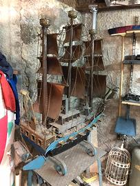 Veliero in ferro e rame artigianale completo di piedistallo in ferro