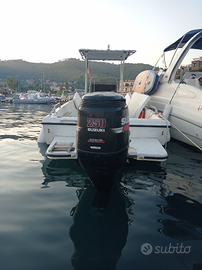 Vendesi per passaggio a categoria superiore splendida barca open modello mano' marine con carena a V ali di gabbiano con motore fuoribordo Suzuki 250 CV 4 tempi con 400 ore di moto certificate prendisole a prua ed a poppa serbatoio acqua dolce da 50 LT doccetta esterna vari gavoni in cui deporre tutto il necessario doppia sentina di cui una automatica barca auto svuotante impianto elettrico e stereo bluetooth con 2 uscite USB nuovi giugno 2025 verricello elettrico con ancora e catena da 50 MT stacca batterie e batterie nuove giugno 2025 serbatoio carburante da 150 LT cuscineria in buono stato T-Top in alluminio più tendalino aggiuntivo barca dai consumi irrisori omologata per 8 persone veloce e sicura velocità oltre 50 nodi ideale sia per la pesca che per le uscite in famiglia barca attualmente in cantiere usata solo 20 giorni l'anno ovvero nel periodo di ferie. Vendesi anche solo lo scafo. Prezzo per la vendita di barca e motore leggermente trattabile per info contattare il nr 3313625741 Elio no perditempo