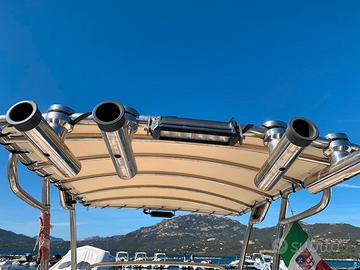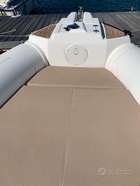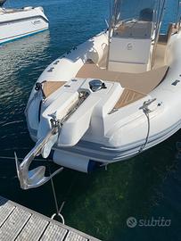 Gommone Capelli Tempest 7,75 del 2019 perfetto, come nuovo, visibile e provabile ad Olbia, ancorato al molo cedibile ad agosto pv. Possibilità di invaso. Motore Yamaha da 250 CV sei cilindri, ore di moto 110 totali Effettuato tagliando 20 e 100 h. a Motore ausiliario Yamaha 2,5 CV ore di moto 0. Entrambi perfetti e regolarmente manutenuti. Ancora di acciaio inox Danfor da 7,5 Kg, cablata e fissata internamente con 50 m di catena da otto millimetri anch'essa inox. Verricello salpa ancora Lewmar da 800 Watt. Fari alogeni anteriori e posteriori, marca Aurora con omologazione militare. Luci di via doppie ed indipendenti su T Top e murate. Doppia batteria con specifica da 100+100 Watt. Due stacca batterie poste in serie accessibili da pozzetto. T top inox artigianale che mantiene inalterato il sistema di protezione guida e cokpit originale Capelli con quattro supporti inox per pesca alla traina sulla testata superiore posteriore + 2 su sostegno esterno del T Top + 2 laterali sulle sponde posteriori. Tendalino posteriore originale Capelli grande che si collega al T Top. Doccia esterna inox su penisola posteriore, scaletta di salita ripiegabile su penisola posteriore, lavello con vano di lavaggio inox e vano per il risciacquo, tavolino x sei commensali abbattibile in pozzetto. Prendisole anteriore e posteriore con gavoni sottoposti e possibilità dell'anteriore di nauti camping. Navigatore/Eco a colori Garmin GPSMap X5 da 11 pollici con cartografia sempre aggiornata. Radio stagna con altoparlanti stereo stagni. Antifurto satellitare con alimentazione indipendente (con SIM). Radio con banda marina portatile. Tutti gli accessori di legge per la navigazione. Battellino di salvataggio auto gonfiabile con revisione non aggiornata.