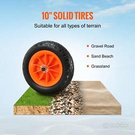 Ruota Solida per Tutti i Terreni: il carrello per kayak è dotato di pneumatici da 25,4cm, non c'è bisogno di gonfiaggio o controlli di pressione. Le ruote di grandi dimensioni possono assorbire meglio gli urti e passare attraverso sezioni di ostacoli, rendendo il carrello adatto a tutti i terreni.