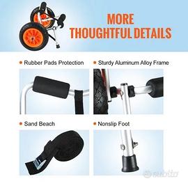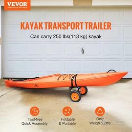 VEVOR Carrello Porta Sup Kayak Canoe in Alluminio Capacità Carico 113kg con Ruote Pneumatiche in PU 25,4cm Design Pieghevole, Carrello Porta Kayak con Cinghie di Fissaggio Carico 113kg Pieghevole