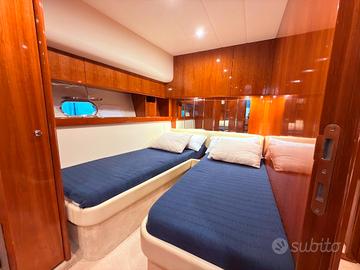 PARTE MECCANICA: pulizia scambiatori di calore, tagliando, sostituzione prese a mare, revisione n. 1 aspiratore motore, n. 1 aspiratore nuovo. Equilibratura eliche1 Matrimoniale italiana, 2 Doppia in piano, 1 Cabina equipaggio, 2 Toilette, 2 Cucina, 1 Salone, 1 Toilette Equipaggio