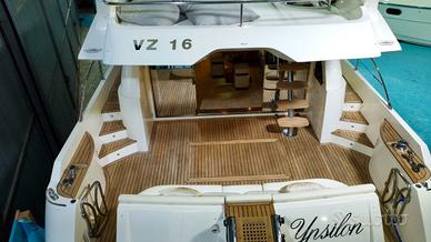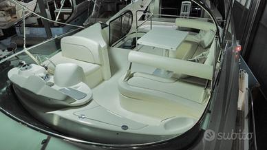 ESTERNI: tendalino fly, ricondizionato teak, spugne copri cuscinerie pozzetto e prendisole prua, sabbiatura e verniciatura plancia comandi fly, tavolo pozzetto pieghevole. Revisione tender e motore.