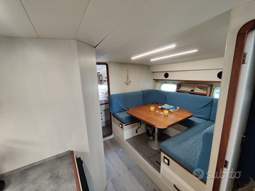 Barca in eccellenti condizioni essendo stata completamente restaurata. Il restauro ha interessato gli interni sostituendo interamente le tappezzerie e il rifacimento completo dell'impianto d'illuminazione con l'installazione di led incassati nel ciellino, per quanto riguarda gli esterni é stato completamente rivisto il layout del pozzetto con la creazione di divani e della cucina esterna il tutto é stato infine coperto da un hard top costruito in sandwich. Il restauro ha interessato anche i motori che sono stati sbarcati e internamente ricostruiti sostituendo fasce, camicie, bronzine ect e revisionando teste, pompe, iniettori ect. A completamento sono stati sbarcati tutti i serbatoi e sostituiti con nuovi in acciaio inox e con l'occasione riverniciate tutte le sentine e i sotto paioli con vernici di ultima generazione.