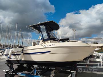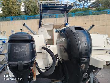 Vendo x mancato utilizzo già da tempo, stupenda barca Spagnola di 7 metri con cabina per riporre tutte le attrezzature di pesca e sicurezza, con la possibilità di inserire un wc chimico, la barca è munita di strumento multifunzione Garmin, stereo, vhf marino, portacanne da riposo e per trainare, doccia, tavolino e cuscineria interna ed esterna per prendisole, tendalino estendibile sino a poppa, due motori Mercury il principale da 150 cv 4 tempi con poco più di 300 ore di moto ed il secondario un 9,9 cv da tiro 4 pale con pochissime ore di moto perché funge solo da ausiliario e non da traina, entrambi sono immatricolati anno 2015. Vendo il tutto al prezzo di realizzo di 19000 euro non trattabili, solo se seriamente interessati chiamare al 3475902181 cortesemente non per perdita di tempo, la barca è esposta a Brindisi.
