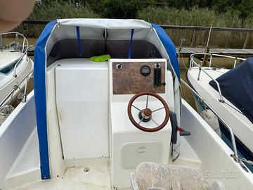 Scafo Walkaround 20 della Bellingardo Adriana con cabina a 2 posti letto. Del 2006 e fino a 3 anni fa d’inverno rimestata in capannone. Cuscineria panca di poppa, prendi sole prua e posto pilotaggio come nuova. Motore Yamaha 4T 40/70 del 2006 con 90 ore di utilizzo. Nel 2025 cambiata batteria, zinchi, olio motore, filtri e girante pompa e non più usata per problemi familiari. Somma richiesta eu 7.500. Possibilità di cessione posto a Rio Ospo