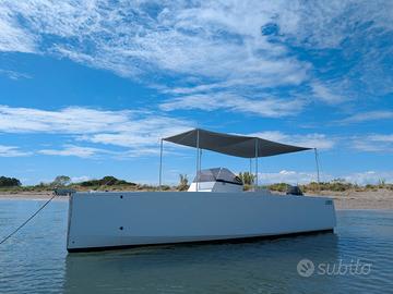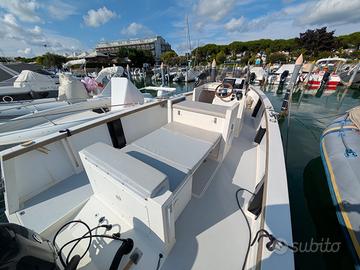 Imbarcazione walkaround in vetroresina e kevlar prodotta dal cantiere nautico SmartBoat (smartboat.fr). Progetto studio VPLP, scafo dall'altissima efficienza, consumi irrisori, planata immediata. Spazi generosi e linee minimali. Cabina/stiva con 2 posti letto, ampio gavone in pozzetto, prendisole di prua componibile, panche a poppa con gavoni e dinette trasformabile in prendisole, cuscinerie nuove. Tendalino ombreggiante con pali verticali. Teli estivi copertura console e panca/frigo/lavello. Specchio di poppa aperto con porte scorrevoli, scaletta bagno a scomparsa. Autopilota Raymarine, manette elettroniche, verricello elettrico, frigorifero a pozzetto, radio/stereo, lavello, docce, Plotter/Ecoscandaglio Raymarine Dragonfly 7. Curiosità: Barca presente nella Serie Lupin di Netflix (Parte 2 Episodio 5) dal minuto 41 in poi, e minuto 44:30. Manutenzione annuale completa al motore già eseguita, attualmente in piazzale sui suoi invasi con copertura invernale. In acqua da fine aprile. Possibile posto barca per la stagione. Prezzo trattabile. Anno di costruzione 2016 Lunghezza fuori tutto/scafo 6,99 m Larghezza scafo 2,48 m Peso a vuoto 1.150 kg Pescaggio scafo 0,40 m Portata persone C/9 - D/10 Motore Mercury Verado 150 ore 800 Ricerche tipo; SmartBoat. Axopar, Saxdor, Pardo, Flipper. Fjord. XO, Jeanneau. Nautica. Barca. Open. Fisherman. Gommone. Walkaround. Cap Camarat, Flyer, Beneteau. Capelli. Boston. Pursuit. Sessa. Ranieri. Eolo. Gobbi, Cranchi, Marinello, Mercury. Honda. Yamaha. Suzuki.