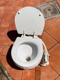 Vendo wc marino della wilcox, made in USA Manuale senza maceratore Sanificato Qualita’ americana duratura Coperchio in legno, vaso in ceramica, e flangia e pompa in alluminio non in plastica come jabsco Ingombro 40x 45 cm Possibilita’ di spedizione o ritiro a mano zona Grosseto Vendo € 60