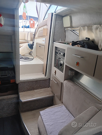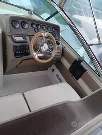 Barca lunga 8 mt con motore mercruiser 6.2 iniezione del 2001con 600 ore circa sbarcato nel 2024 per revisione completa compreso il piede bravo 3 con eliche in acciaio inox, barca che tocca I 45 nodi, in velocità di crociera ha consumi accettabile, barca in ordine dalla cuscineria alla meccanica con prendisole ampio pozzetto comodo, frigorifero, scaletta di risalita, acqua dolce, cuscineria in ottimo stato, salpaancora elettrico, tendalino estivo con zanzariera, portatender, luci di navigazione e notturna, cucina, stereo blutut, elica di prua, doppia cabina, bagno con wc elettrico, guida con buona visibilità, flap, trim, pronta all'uso