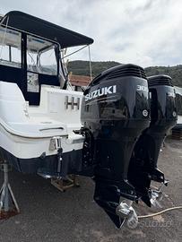 Wellcraft 270 Coastal, anno 2004. Fisherman dalle grandi doti di navigabilità, su questa in particolare è stato eseguito un post production per aumentarne la potenza installabile fino a 2x300hp (originariamente max 2x250hp). MOTORI NUOVI! Dinette trasformabile in letto, cucina attrezzata, bagno separato con wc elettrico, letto sotto al pozzetto con accesso agevole. Lunghezza: 8.62 m Larghezza: 2.95 m Motori: 2x300hp Suzuki DF300 Ore moto 20 Serbatoio carburante: 750 l Serbatoio acqua:100 l Velocità di crociera: 27 nodi Velocità massima: 35 nodi Consumi 60 l/h Accessori: Raymarine Element 9 con sonda di poppa 3d rv 100; Garmin 8412 e sonda b 265 lh nuovi; Salpa ancore; Vasca del vivo; Doppia vasca pescato; Chiusure con Cristal nuove. Motore elettrico di prua Motorguide con batteria al litio 100 ah e caricabatteria incluso. OTTIME CONDIZIONI, FISHERMAN USA Mediazione a cura dell'acquirente