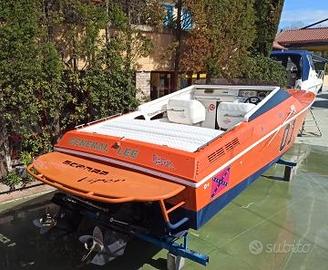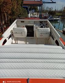 Barca velocissima con scafo prodotto nel 1993 e reimotorizzato e completamente restaurato nel 2007 con stile generale Lee. Sono stati montati due motori nuovi Mercruiser 6.3 MPI Bravo III iniezione da 320Hp ciascuno per avere consumi bassissimi in crociera oppure viaggiare a 48 nodi. Grande prendisole di poppa, cabina con 2 posti letto, possibilità di installare un piccolo WC. Barca dotata di scarichi modificati con apertura /chiusura elettronica, doppia tromba con sequenza musicale. Strumentazione, impianti, motori, scarichi, refitting tutto del 2007.