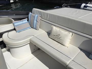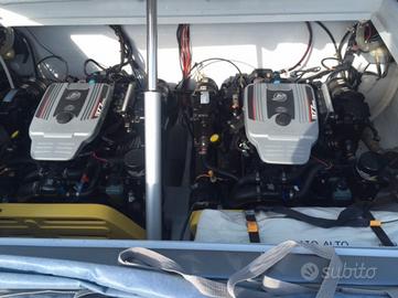 Scafo totalmente refittato 2015-2018 Motori nuovi come anche transom, piedi , eliche e elettronica tutta Mercury Mercruiser nel 2016 ,solo questi 83000 Ogni particolare sotto descritto è stato cambiato e messo nuovo, anno per anno Lavori eseguiti nel 2015: Refitting scafo sostituiti i vecchi legni con nuovo compensato marino Lay out rifatto appaggiareni, panca e vano copri motori consolle di guida disegno nuovo inserti in carbonio Porta copri porta in carbonio Lavori 2016 2 Motori Mercuiser 377 mag DTS digitali 320 HP 2 Piedi Bravo One 2 Eliche Bravo 1 ( 22") 2 Transom 2 Manette elettroniche Zero Efforth corsa con strumento digitale piedi Strumenti Mercury , 2 Mercmonitor digitali per tutte le informazioni ori tot , consumo istantaneo di ogni motore / 2 contagiri /2 temp olio/ 2 press acqua , angolo barra / livello carburante Strumento regolazione Trim Lowrance 8 integrato Bussola Switch dei vari comandi Salpancora Quick Base ancora Lewmar Catena calibrata 50 mt Tutte le bitte gli ombrinali Areatori e bocche lupopri Frigorifero Webasto Cagnaro Scarab Cuscinerie esterne Tendalino centrale Bimini con scorrimento Caricabatterie Quick Stereo 2 din 4 casse esterne Boss Marine e 1 subwoofer da 1000 w piu' 4 casse interne Sistema antincendio sia nel vano motori che internamente Serbatoio acqua nuovo 100 lt VHF Cobra Antenna VHF Pistone elettrico per vano motori Volante Lavori 2017 Luci led sia nel cockpit che nella parte interna,4 batterie Tudor da 95 ah ( 2 servizi 2 motori),2 pompe di ,sentina di cui 1 con allarme,Scaletta 5 gradini telescopica a scomparsa ,Ripulito serbatoio della benzina,Tv 22" ,Asta per luce 360°,3 luci subacquee,2 fornelli con gel,Luci di via a led Luce poppa led Lavori 2018 WC elettrico Jebasco,Prese a mare,Ancora Delta ,Rifatto il parabrezza ,Tavolo su misura ,4 oblo' esterni nuovi,Tendalino per coprire la parte dietro. La descrizione dei Lavori 2019-2020-2021-2022-2023-2024 a richiesta Tipol: Magnum Marine, Cigarette, Baia, Tornado