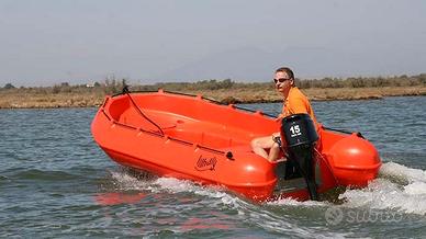 lunghezza: 3,70 mt larghezza: 1,73 mt altezza: 0,81 mt peso: 143 kg portata persone: cat. D 8 persone, cat. C 6 persone. massima motorizzazione: 20 cv disponibilità colori: blu, arancio, rosso, grigio, Certificazione: CE