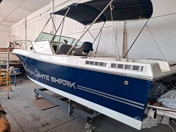 White Shark 237 Wa motore volvo penta kad 32 con 500 ore moto 170 cv turbo diesel turbina nuova appena tagliandato piede 290 duo prop accessori stereo fusion garmin eco dragon fly ray marine pozzetto tek tendalino nuovo vericello elettrico con comandi in plancia plancetta di poppa con supporto motore aux cuscinerie esterne autoclave consumi molto contenuti velocita crociera 21 max quasi 30