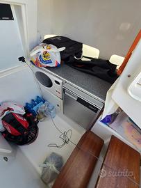 Vendo barca White Shark 285 del 2004 con due motori Evinrude e-tec da 300 hp del 2010 con circa 600 ore. La barca ha una cabina matrimoniale a prua sotto il prendisole e nella consolle si trova la cucina con forno a microonde, frigo nuovo, lavabo et. oltre ad un wc elettrico con serbatoio delle acque nere. La barca ha scafo blu con interno bianco e pavimento in tek. Tappezzeria completa in ottime condizioni, tendalino con prolunga a prua nuovo, strumenti elettronici e-tec e cartografico garmin nuovo, 4 batterie nuove, impianto 220 con caricabatterie nuovo, flapps, verricello con catena, serbatoio acqua dolce con autoclave etc. Tutto in perfette condizioni. Prestazioni TOP... oltre 50 nodi di velocità massima, crociera a 25/30 nodi con consumi di 75/85 litri/ora. NESSUN LAVORO DA FARE.