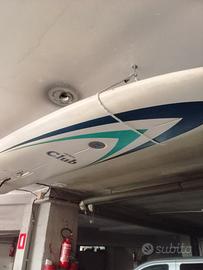 Mistral Competition Club, versione in polycoren, completo di deriva e pinna basculante, piede d'albero, albero intero in epoxy, vela e boma. Tutto originale Mistral. Buone condizioni generali e tutto funzionante.