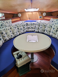Barca motorizzata con 2 volvo penta AD31P 150 cv diesel bassi consumi, piedi 290 dp con sostituzione di un cono frizione. Sbarcati i motori nel 2025 per effettuare una manutenzione straordinaria revisione pompe e iniettori revisione scambiatori revisione 1 pompa Acqua dolce e 1 pompa acqua salata revisione alternatori e motorini di avviamento, revisione pistoni trim tutti e 4 e sostituito pistone sollevamento cofano. Nel 2024 sostituiti i raiser e le turbine.