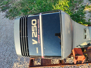 Yamaha 250 hp xl anno 99 due tempi iniezione indiretta ,modello OX 66, con regolare libretto, ha un problema di alimentazione: oltre i 2800 giri si affoga. Vendo motore intero o per pezzi di ricambio: piede, elica 19 in acciaio, iniettori, pompa benzina alta pressione nuova, calandra, scatola comandi a chiesuola nuova, blocchetto accensione nuovo, trim, motorino di avviamento, serbatoio olio miscelatore, strumento digitale Yamaha perfetto ed altro.... il tutto perfettamente funzionante. Vendo per avere acquistato altro motore quattro tempi. Visibile a San Felice Circeo