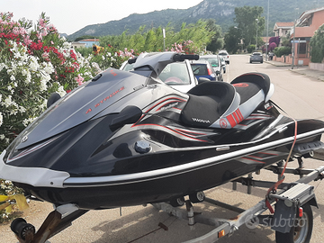 Sella appena rifatta con loghi Yamaha, stabilizzatori, motore rifatto di guarnizioni e iniettori, filtri e cavo retromarcia.*** Più giubbini salvagente neri del valore di 100 € ciascuno,*** più muta da 3,5 mm invernale intera***. Colori originali ovviamente un po' sbiaditi. Omologata per tre pax... Carrello già venduto. Astenersi perditempo.!!! Vendo a malincuor