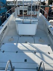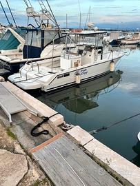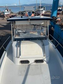 Zaniboni Bluetime 27 (lunghezza 9,5 metri) colore bianco come da foto, motorizzata con 2 motori entrobordo 2x165hp MerCeuiser, piede poppiero, doppio lavandino esterno con acqua dolce e salata, due docce esterne con acqua dolce e presa a mare per acqua salata, 2 vasche per vivo, 2 porta canne per murata e specchio di poppa, salpa ancora elettrico, GPS cartografico ecoscandaglio, Radar, VHF, doppia batteria (nuove 2024) tendalino a poppa, grande prendisole a prua,luci di cortesia nello specchio di poppa, tavolo apribile esterno, frigorifero, wc e lavandino in bagno separato, due posti letto e cuscinerie sia a poppa che prua comprese.