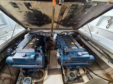 L'armatore nel 2000 ha m sostituito i motori con 2 VM da 250HP con 1500 ore utilizzo che dopo l'intervento garantiscono cosumi bassi e buona velocità di crociera.