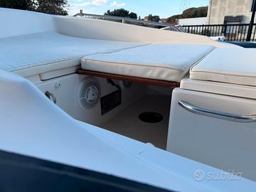 Zar 53 Formenti Anno 2006 Tenuto con tanta cura e sempre ricoverato al chiuso in inverno. Usato solo in estate 3 mesi. Mai stato in acqua stagnante. Mai usato per pescare. Completo di: Motore Evinrude 115cv circa 400 ore Elica Vyper in acciaio Inox GPS Garmin Striker 5 ecoscandaglio Radio Boss Bluetooth con casse stereo Cuscineria completa rifatta nel 2024 Tavolo per pranzare a prua Quadro comandi completamente rifatto nel 2024 Nuovo Volante Timone Roll Bar in Acciaio Inox Serbatoio benzina 130 lt in acciaio inox Doccia con serbatoio acqua 50 litri Parabordi e cime di vario tipo per ogni tipo di ormeggio 1 Ancora Dumfort 1 Ancora Hall Telo di Copertura Originale Zar Formenti Carrello Ellebi revisionato 2024 Pronto a salpare.
