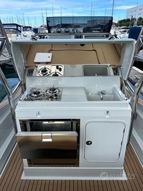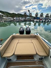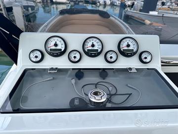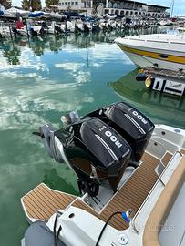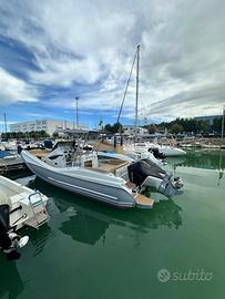 ZAR 95 Sport Luxury, di ultima serie, motorizzato con 2 x 300 Hp Mercury con circa 40 ore di moto, tutto anno Luglio 2025, usato solo per prove. Gommone pari al nuovo e full optionals: - T-Top - N.2 Frigoriferi da 90 Lt. - Verricello elettrico per salpa ancora con conta catena. - Cuscineria completa di prua e di poppa color champagne con cuciture nere. - cancelletto di poppa. - Impianto stereo Fusion 770 con display lcd - 4 autoparlanti 6 1/2 " fusion Apollo , 2 autoparlanti 7 1/2 " e un sub woofer fusion Apollo 10" - Teak sintetico Flexiteek interni ed esterni - Telo copertura totale - Garmin GPS Map 1623 con cartografia Navionics e domotica - Ecoscandaglio con doppia frequenza. - VHF - Luci notturno blu. - Angolo cucina con fornello a due fuochi e lavello. - 4 batterie, caricabatterie Victron Energy. - 3 luci di poppa subaquee blu. Interni composti da ampia cabina di prua con letto matrimoniale e locale bagno con wc elettrico, lavello con doccino estraibile. Motori con eliche 4 pale da 21 e supera una velocità di 50 nodi. Vendesi per passaggio a gommone di dimensioni maggiore: SACS, Salpa, Flyer, Ranieri, Capelli, Lomac. Richiesta: 170.000+Saldo Finanziamento