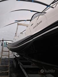 Zar 97 Skydeck, anno 2010 Disposizione esterni: grande prendisole a prua completo di cuscineria, a poppa il pozzetto presenta una comoda seduta ed una postazione con 2 fuochi ed un lavello. Disposizione interna: cabina con letto matrimoniale molto luminosa grazie all'oblò presente, luci dei comodini, chiusure dei mobiletti e specchi nuovi. Bagno in locale separato dotato di wc elettrico, doccia e lavabo con rubinetteria e maceratore nuovi. Refitting 2025: Tubolari nuovi con materiale Orca 866 perlage, originali Zar. Lucidatura scafo eseguita a Marzo. Lunghezza: 9.15 Larghezza: 3.30 Motori: 2x300hp Yamaha V8 Ore di moto 800 circa, con tagliando completo motori con cinghie di distribuzione effettuato a Marzo 2025 Velocità Massima 50 nodi Velocità di Crociera 30 nodi; con un consumo di circa 45 l/h per motore. Accessori: ECO con GPS e carta nautica Garmin 1223XSV con sonda passante; VHF Icon con GPS; Verricello elettrico; Contametri del verricello, Radio FM-AM; Luci di via; Luci camminamento blu; Rollbar con luci; Sintek; Casse radio Boss Marine; Zattera per 8 persone (validità fino a Gennaio 2026); OTTIME CONDIZIONI GENERALI, DA AMATORI Tutti i contenuti (caratteristiche, metrature, accessori, ecc. ) degli annunci sono puramente indicativi, potrebbero contenere imprecisioni o errori, pertanto non comportano nessun vincolo contrattuale. Per garantire la privacy, l'indirizzo può non rispecchiare esattamente l'ubicazione del natante ed è utile al solo fine di fornire un riferimento generico per la sua localizzazione ed un ausilio alla consultazione. Il prezzo è soggetto a mediazione agenzia. Gli acquirenti hanno diritto di ispezionare personalmente l'oggetto e/o di sottoporre il natante a perizie a loro spese, il mediatore non può essere considerato responsabile delle probabili inesattezze qui riferite. Consigliamo di visionare sempre l'oggetto prima dell'acquisto.