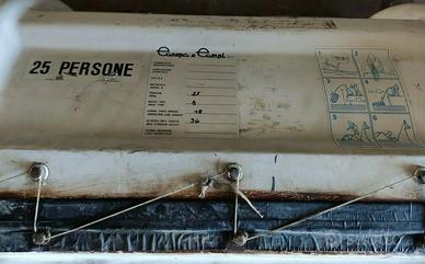 trovata in magazzino, sicuramente da revisionare. stata sempre al chiuso, non ha preso né acqua piovana né esposizione a raggi solari. il prodotto è utilizzabile per 25 persone.