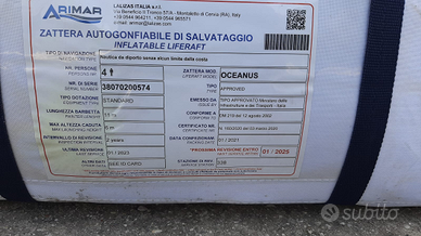 Vendo Zattera di salvataggio Arimar 4 posti, adatta per navigazione senza limiti dalla costa da revisionare, imbarcata pochissimo condizioni perfette.Consegno a mano in tutto Veneto ed Emilia.