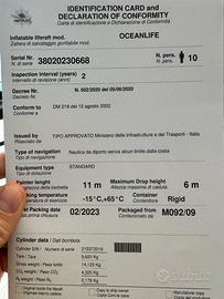 zattera di salvataggio senza limiti dalla costa, da revisionare, gonfiabile, 11mt da 10 persone, buone condizioni. Completa di carta di identificazione e dichiarazione di conformità . Il prezzo si intende al netto di iva.