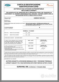 Vendo zattera autogonfiabile Eurovinil Compact-Dry 8 posti, modello in valigia morbida omologato per navigazione entro 12 miglia dalla costa.