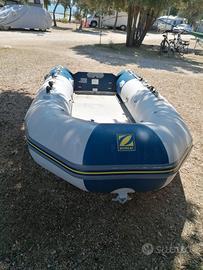 gommone zodiac 348 ottime condizioni completo di motore 2 tempi serbatoio ancora salvagente remi ruote alaggio pompa gonfiaggio elettrica ecc.